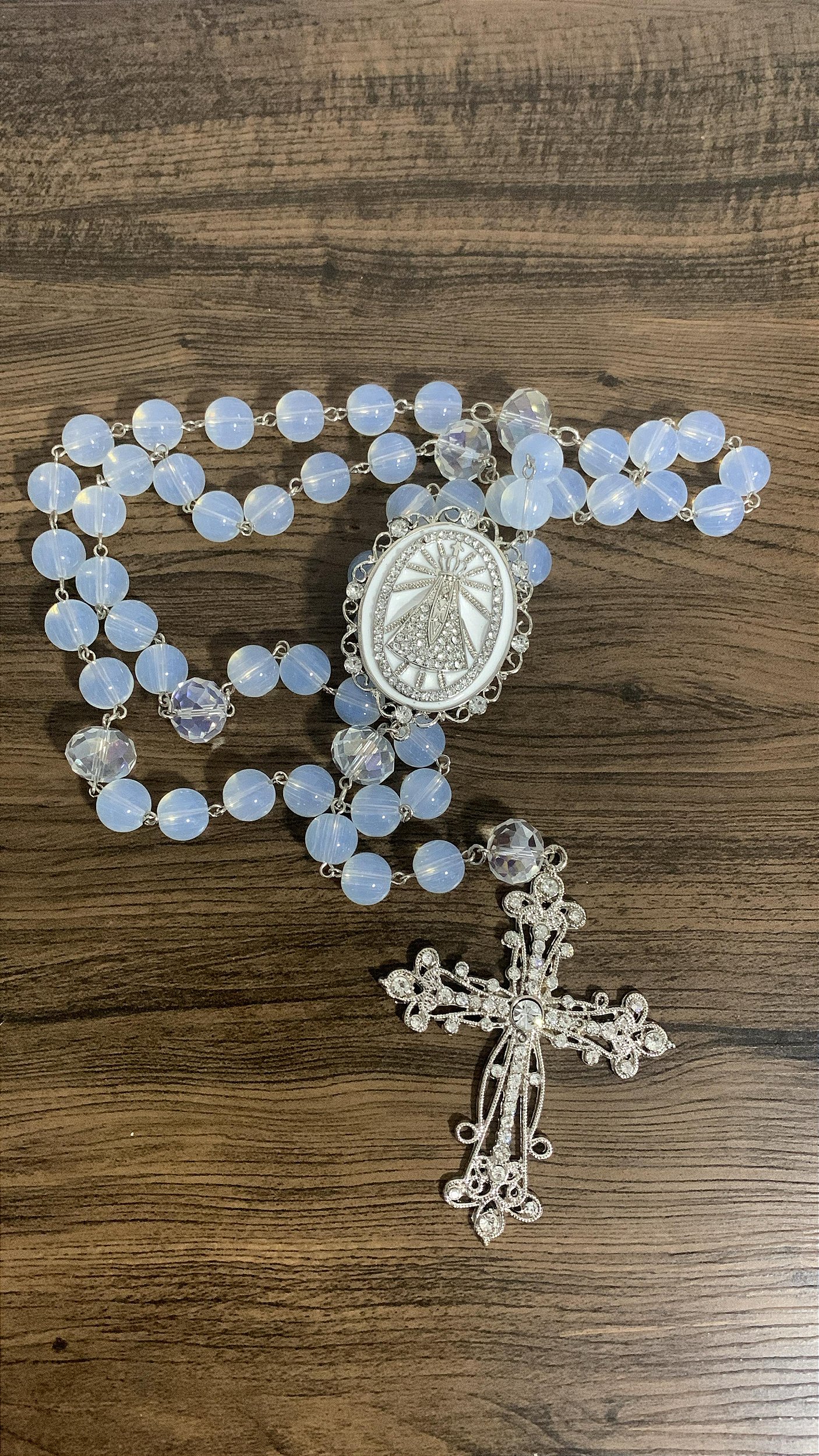 Terço feito com muito carinho com em contas de vidro branco 12 mm