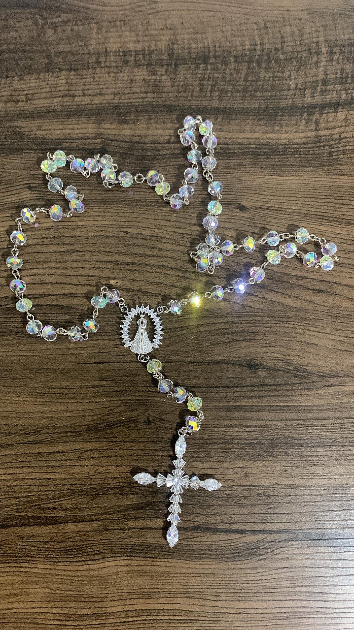 Terço para noiva de cristal zircônia 8 mm Nossa Senhora Aparecida com Zircônias
